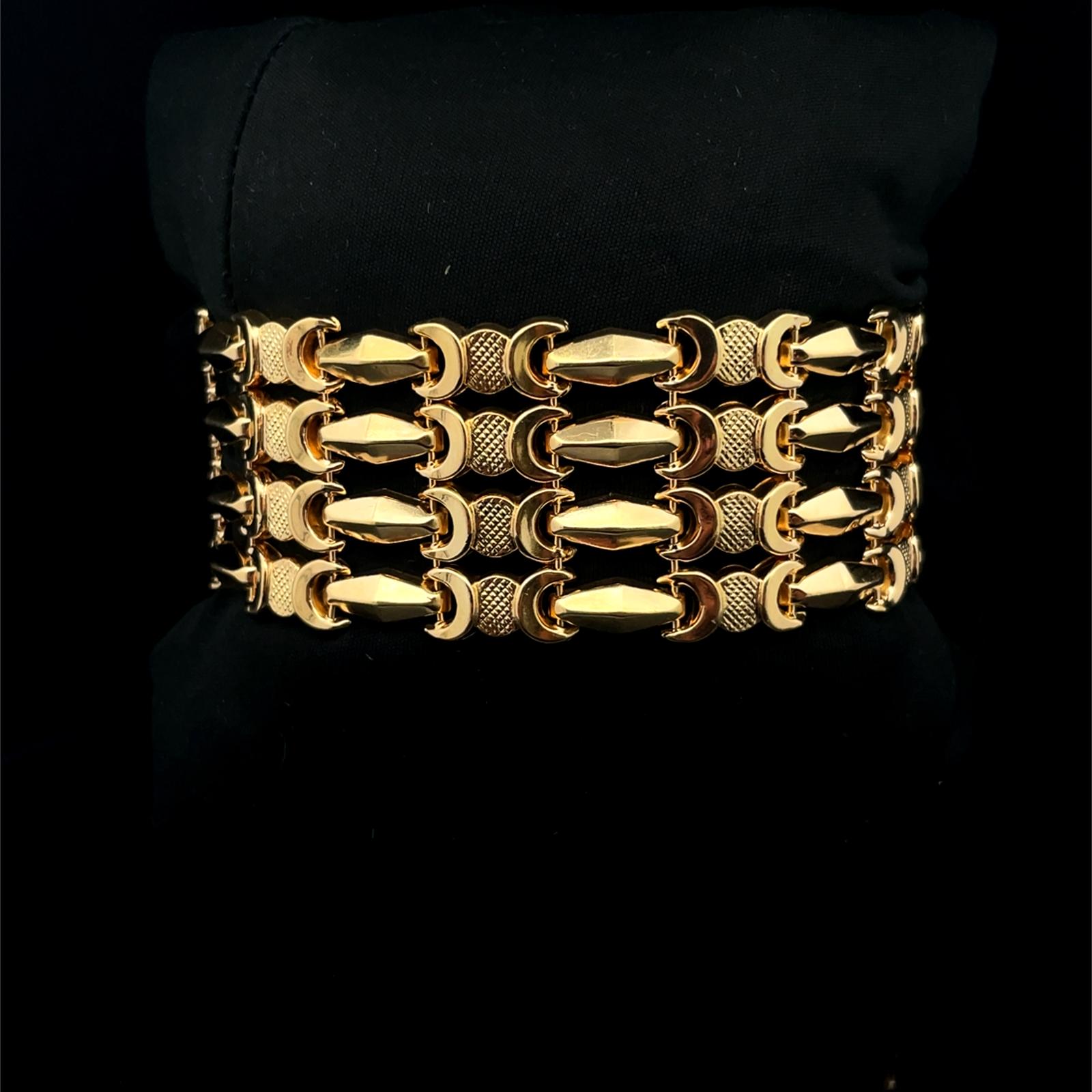 Crafted in luxurious 18 karat yellow gold, this elegant bracelet showcases timeless sophistication and exceptional craftsmanship.