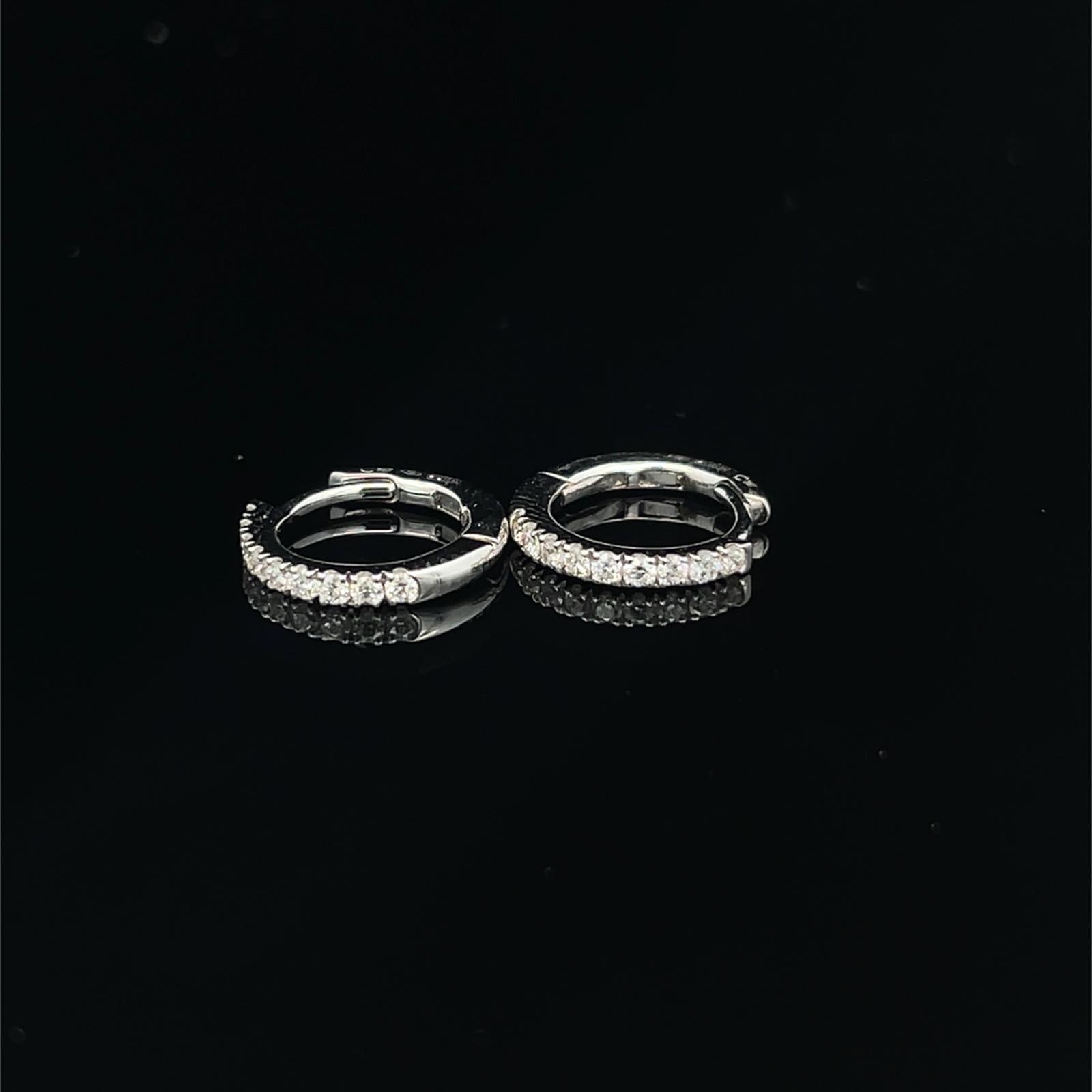One pair of loop earrings crafted in 18kt white gold showcasing multiple round brilliant cut diamonds of 0.16ct total. The overall weight of the earrings is 1.30 grams.