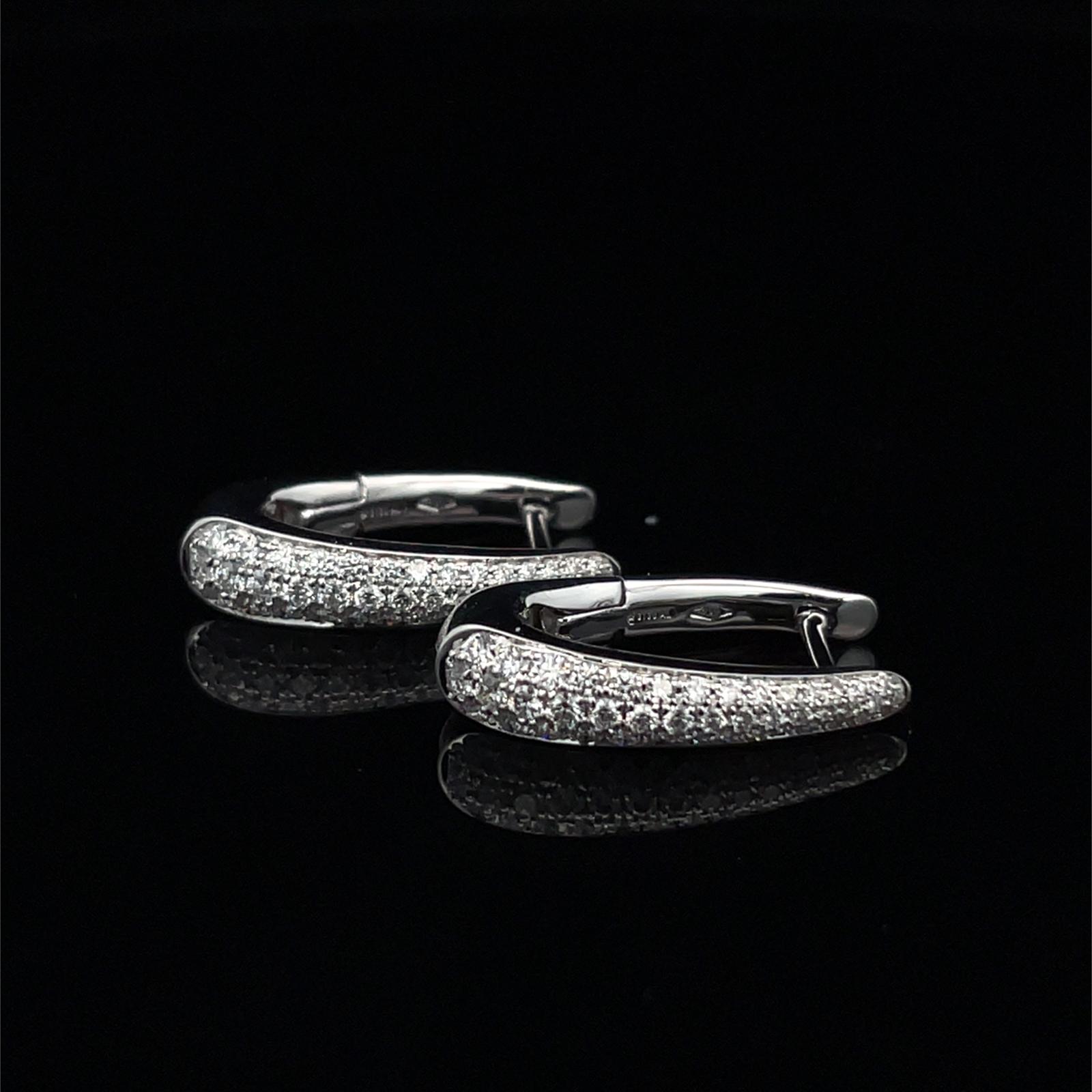 One pair of dress earrings crafted in 18kt white gold showcasing 86 round brilliant cut diamonds of 0.54c total. The overall weight of the earrings is 3.40 grams.