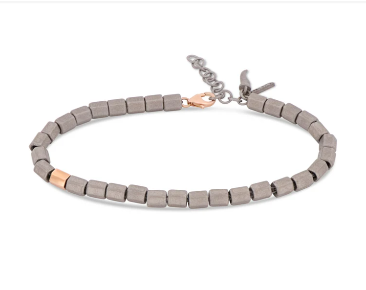 One bracelet crafted in titanium and 9kt gold showcasing one black diamond of 0.01ct. The overall weight of the bracelelt is 9.72 grams.